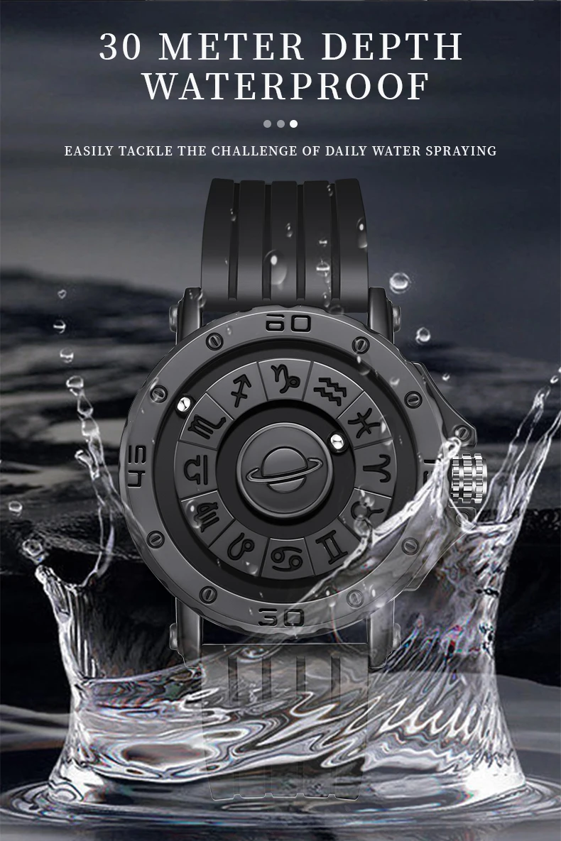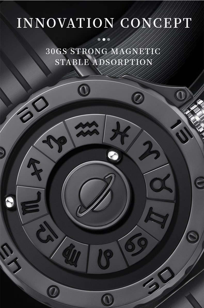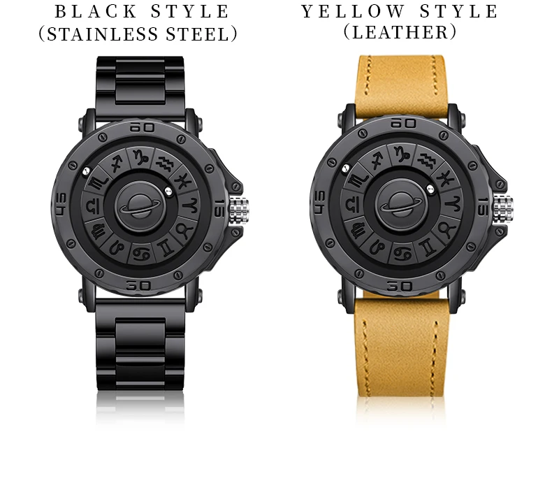 - Each watch features two ball bearings that use magnetized technology to travel around the face of the watch.