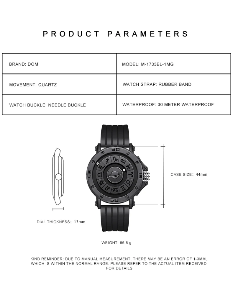 2025 Creative DOM Watch 1733 Magnetic Ball Metal Multinational Watches